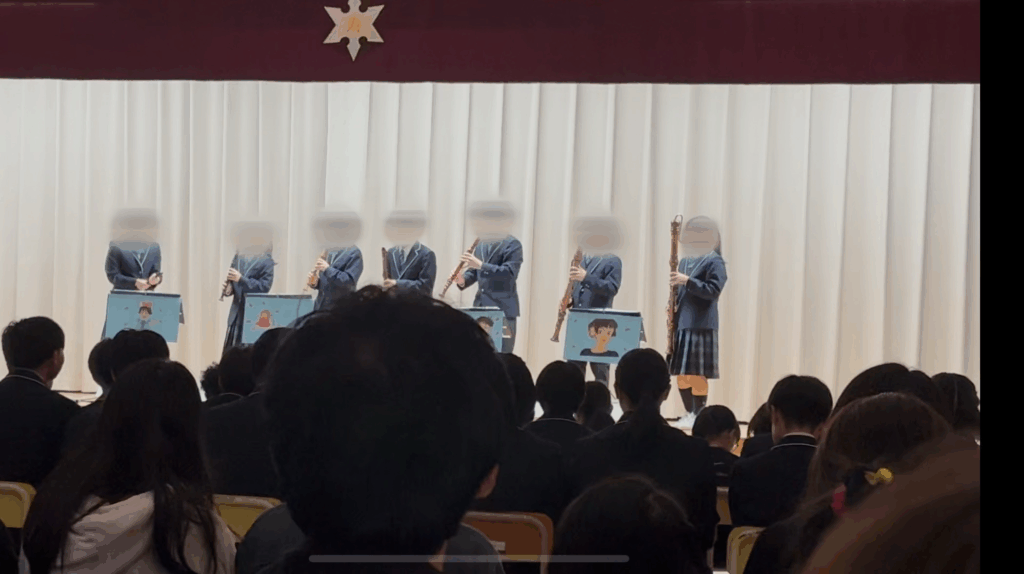 器楽部の演奏では、「崖の上のポニョ」や「宇宙戦艦ヤマト」を披露。